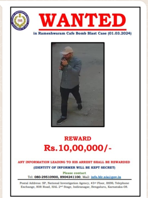 ബംഗളൂരു: രാമേശ്വരം കഫേ സ്ഫോടനക്കേസ് പ്രതിയെ കുറിച്ചുള്ള വിവരങ്ങള് അറിയിക്കുന്നവര്ക്ക് പത്തുലക്ഷം രൂപ പ്രതിഫലം പ്രഖ്യാപിച്ച് എന്ഐഎ.വിവരങ്ങള് കൈമാറുന്നവരുടെ പേര് വിവരങ്ങള് രഹസ്യമായി സൂക്ഷിക്കുമെന്നും എന്ഐഎ അറിയിച്ചു.