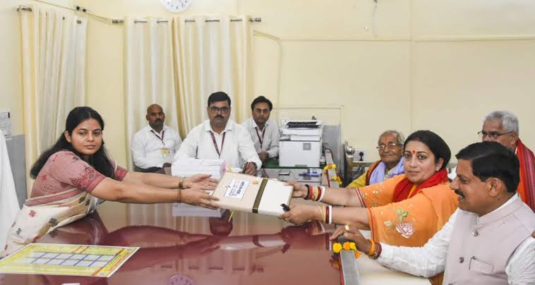 സ്മൃതി ഇറാനി അമേഠിയിൽ നാമനിർദേശ പത്രിക സമർപ്പിച്ചു.