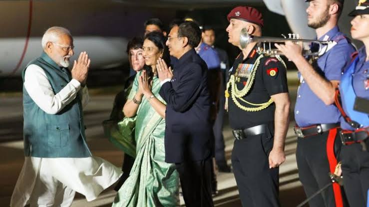ജി 7 ഉച്ചകോടിയുടെ ഔട്ട്റീച്ച് സെഷനിൽ പങ്കെടുക്കാൻ പ്രധാനമന്ത്രി നരേന്ദ്ര മോദി ഇന്നലെ ഇറ്റലിയിലെ അപുലിയയിലെത്തി. വെള്ളിയാഴ്ച നടക്കുന്ന ഉച്ചകോടിയുടെ ഭാഗമായി അദ്ദേഹം നിരവധി നേതാക്കളെ കാണും. ഹാട്രിക് വിജയം നേടി സത്യപ്രതിജ്ഞ ചെയ്ത് അധികാരമേറ്റതിന് ശേഷമുള്ള പ്രധാനമന്ത്രിയുടെ ആദ്യ വിദേശയാത്രയാണിത്.