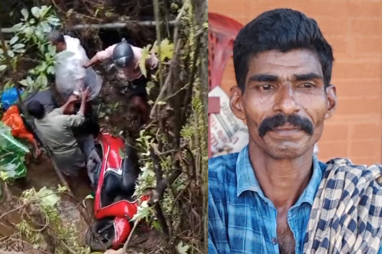 Tamarassery: A tragic road accident on the National Highway near Kaithapoyil claimed the life of a man from Kannootippara, Tamarssery, after a car collided with a scooter, causing it to veer off the road and plunge into a gorge.