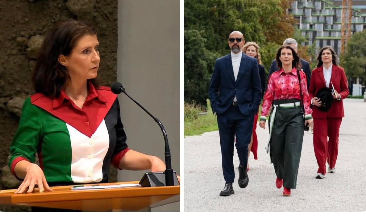 THE HAGUE – A Dutch Member of Parliament who was recently expelled from a parliamentary budget debate for wearing clothing in the colors of the Palestinian flag has returned to the chamber in a new sartorial protest. The MP, Maaike van der Werf, arrived for the debate on a new budget wearing a black t-shirt with a watermelon print.