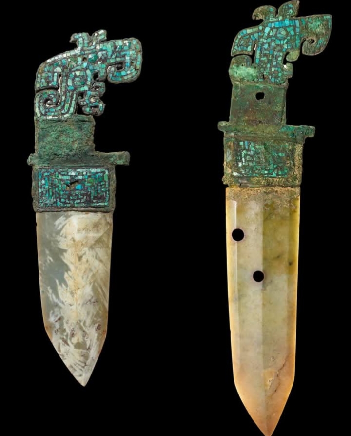 Scholars emphasize that such artifacts provide valuable insight into Shang society. They reflect not only the dynasty’s advanced craftsmanship but also its hierarchical structure, where symbols of martial power were closely tied to spiritual authority. The combination of jade, bronze, and turquoise demonstrates the sophistication of Shang artisans and their ability to merge utility with deep cultural meaning.