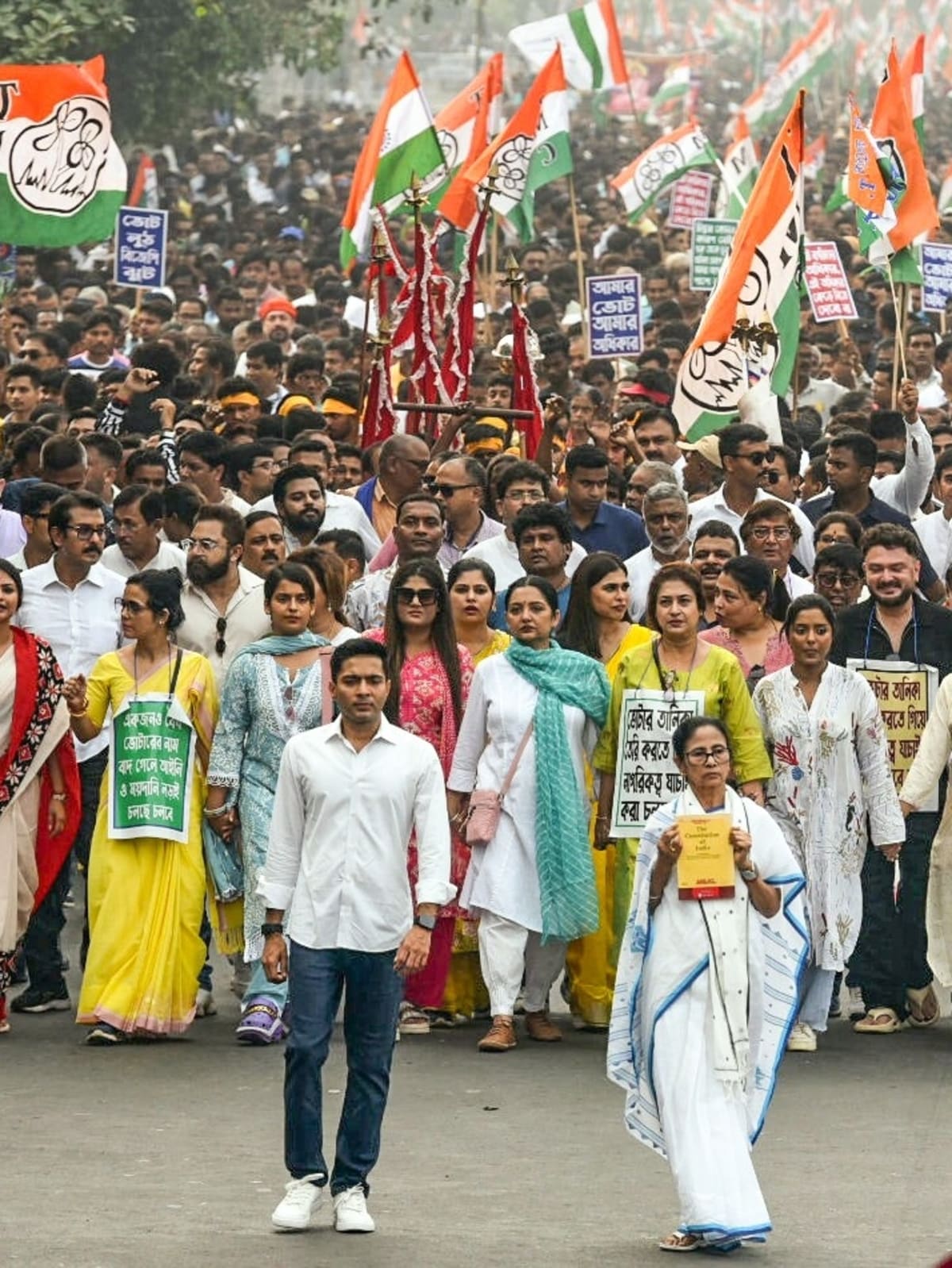 The Chief Minister led the march from the statue of Dr. B.R. Ambedkar on Red Road to Jorasanko Thakurbari, the ancestral home of Rabindranath Tagore, turning central Kolkata into a sea of green and white TMC flags. The protest marks one of the largest public mobilizations by the ruling party this year, reflecting the rising political tensions ahead of the 2026 West Bengal Assembly elections.