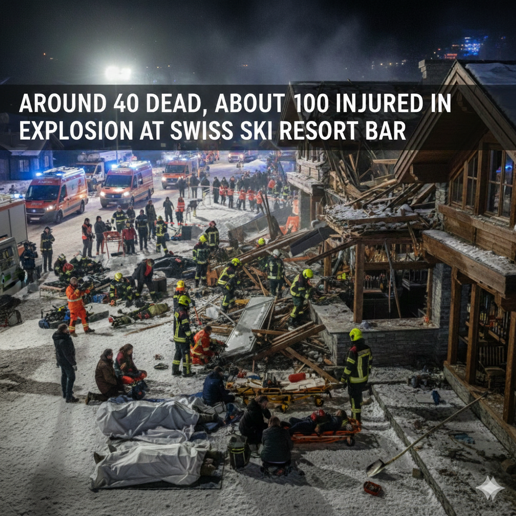 A devastating explosion ripped through a crowded bar in the luxury Swiss ski resort of Crans-Montana in the early hours of January 1, 2026, killing around 40 people and injuring about 100 others, Swiss authorities and foreign ministries said.