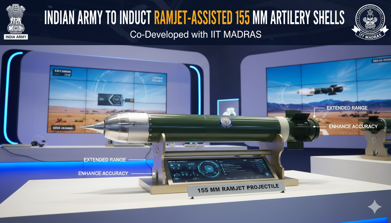 New Delhi, January 2026: The Indian Army is poised to become the world’s first military force to deploy ramjet-assisted 155 mm artillery shells, marking a significant leap in indigenous defence technology and artillery firepower. The project — co-developed with the Indian Institute of Technology Madras (IIT-M) and sanctioned by the Army Technology Board (ATB) — aims to substantially extend the range and lethality of standard artillery ammunition.